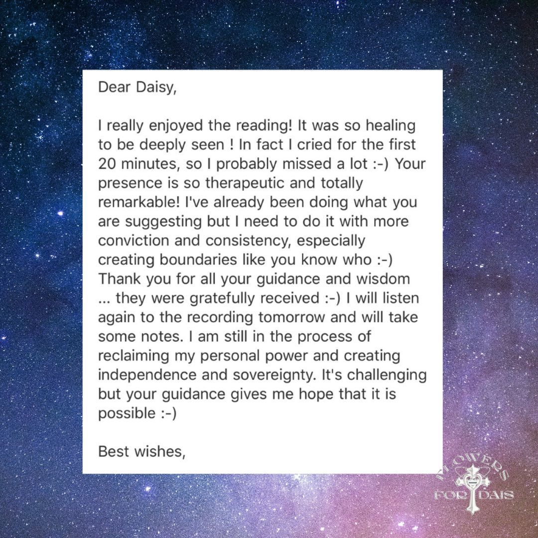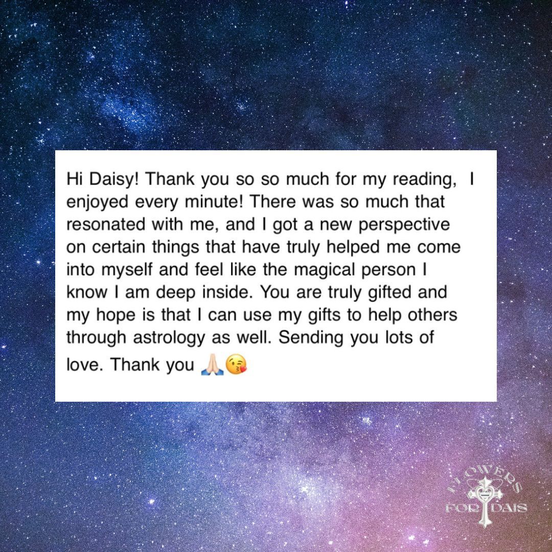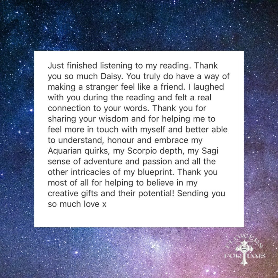 If you are booking the following reading as a returning client please specify in the submission form so that Daisy can prepare your upcoming transits, progressions and solar arcs if necessary.